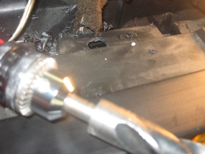 The inverter is mounted under the dash pad, and a hole is drilled through